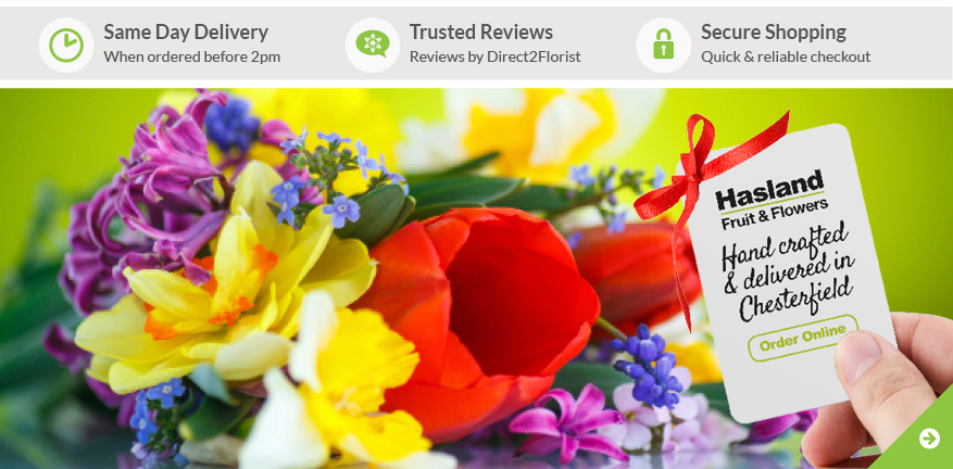 Welcome to Hasland Fruit & Flowers. We proudly offer a wide selection of floral items from bouquets to arrangements and will try our best to tailor our floral items to any occasion. We can also provide same day delivery on all orders placed before 2pm this includes national and International delivery through Direct2florist. We offer a friendly and welcoming experience to each customer and strive to achieve the very best service by meeting your every need down to even the minor details to ensure that you leave our shop 100% satisfied.